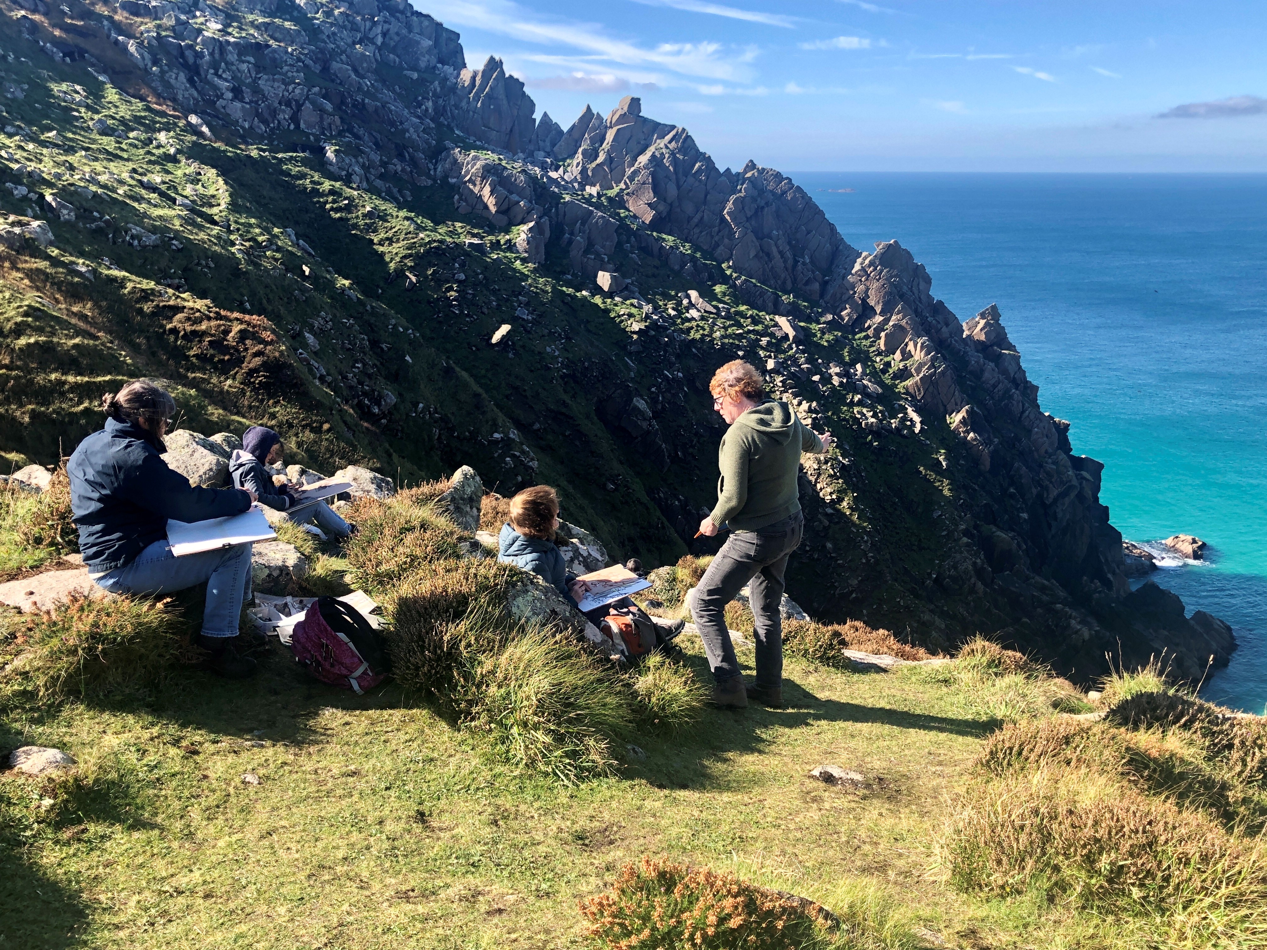 Please bring old clothes to paint in. Sturdy shoes such as walking boots or trainers for some walking on coast paths, a hat in case of particularly good weather, warm and waterproof clothes. Bringing something light to sit on while outside such as a small cushion, sit mat or rolled-up fleece is a good idea.